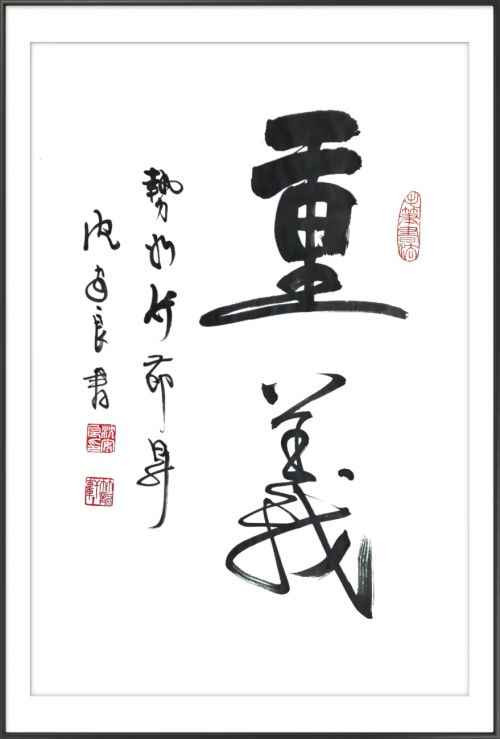 2021年8月26日,人民大会堂收藏其竹笔书法作品《立足中国,改变世界》。